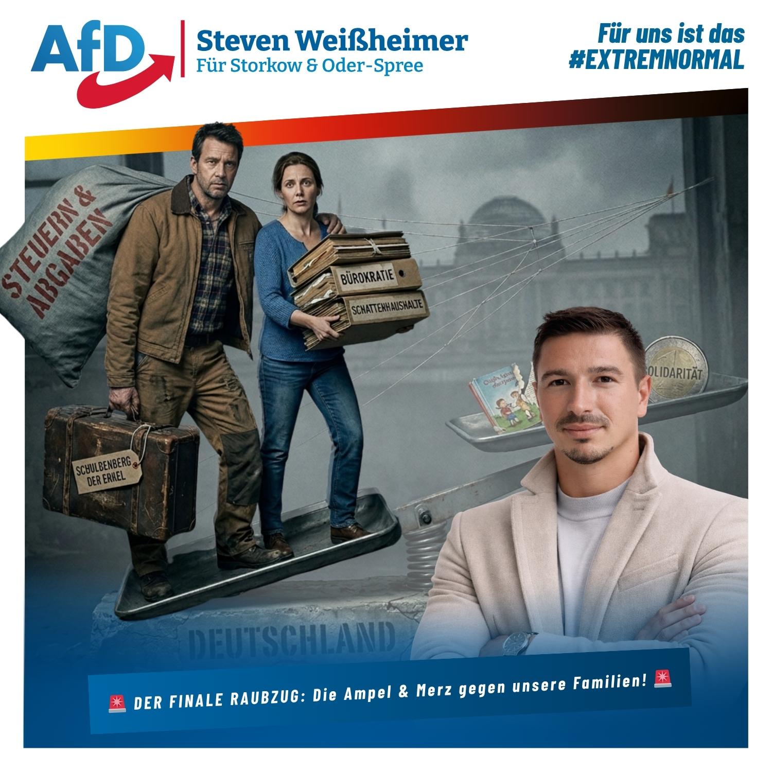 Abschaffung der Mitversicherung, höhere Mehrwertsteuer, Angriff auf das Ehegattensplitting und Zweckentfremdung von Schulden: Steven Weißheimer kritisiert einen massiven Angriff auf die arbeitende Mitte und die Familie in Deutschland.